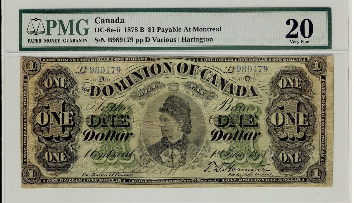 1878 $1 DC-8e-ii #B989179, PMG VF20.
