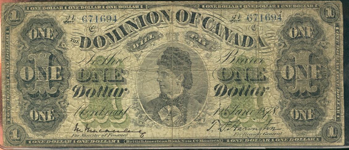 1878 $1 DC-8e-iii-M #671694. Problem free VG example.