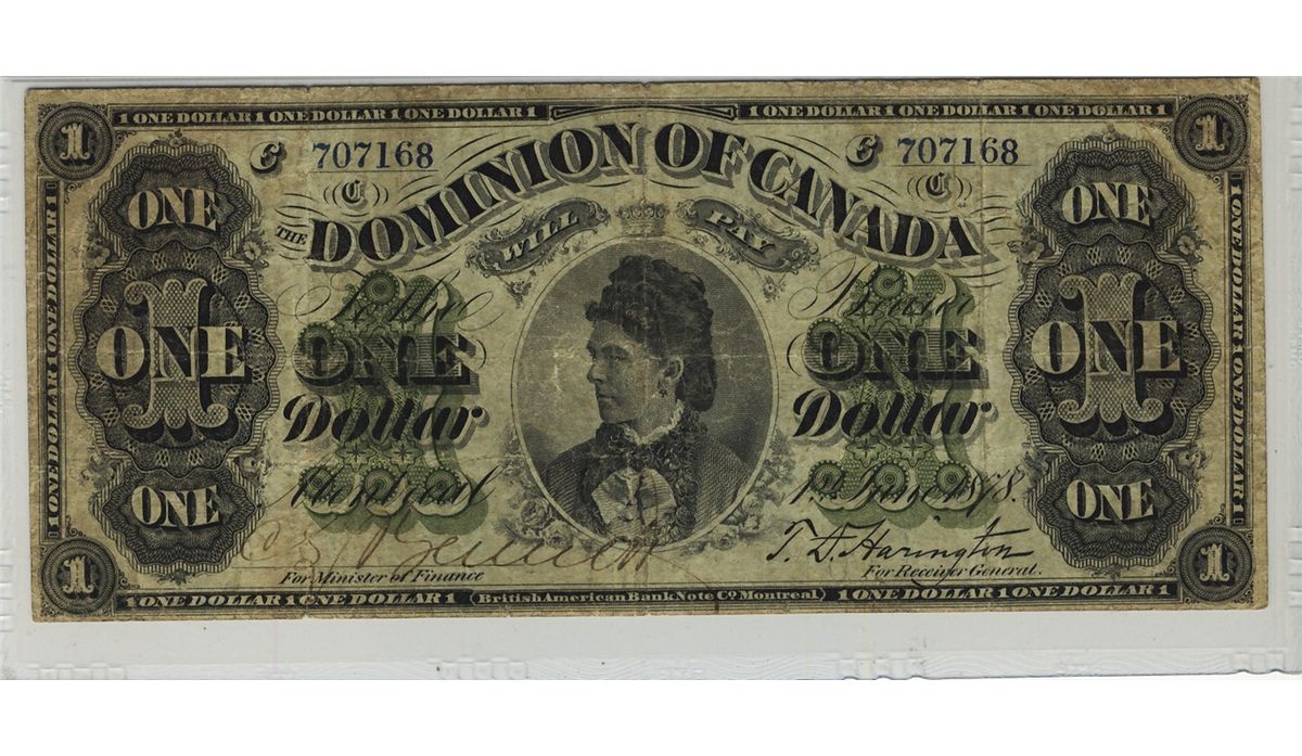 1878 $1 DC-8e-iii-O, $1 PMG VF-20, Payable at Montreal.