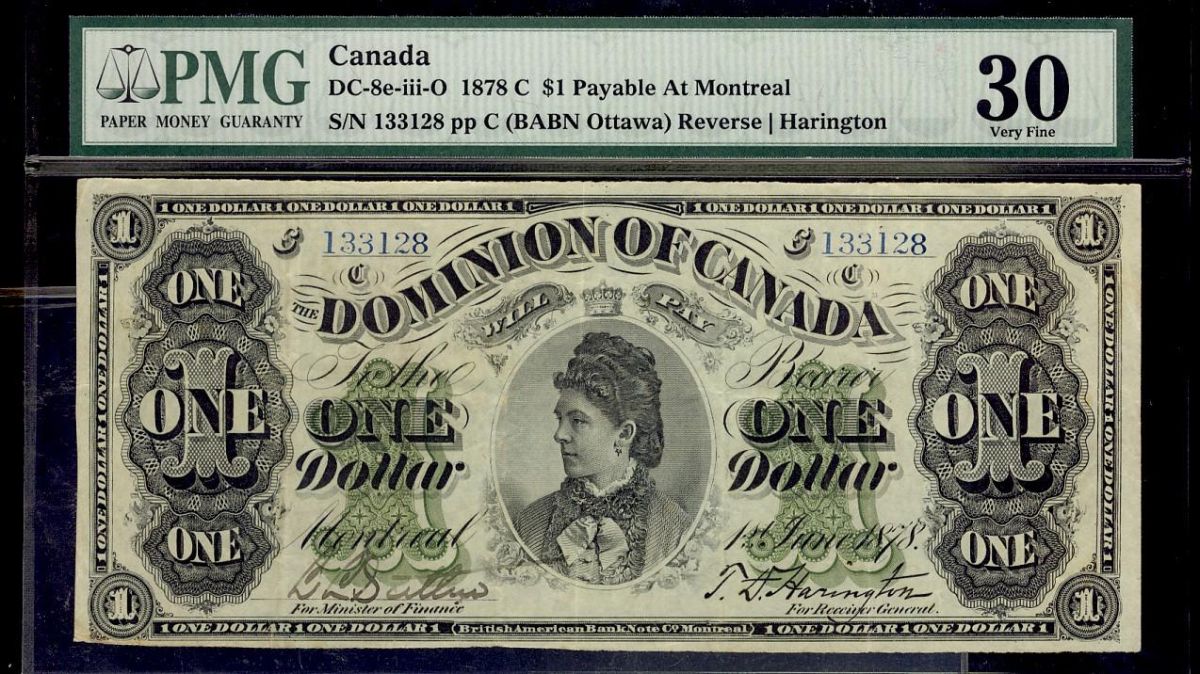 1878 $1 DC-8e-iii-O #133128 PMG VF30. A lovely example.