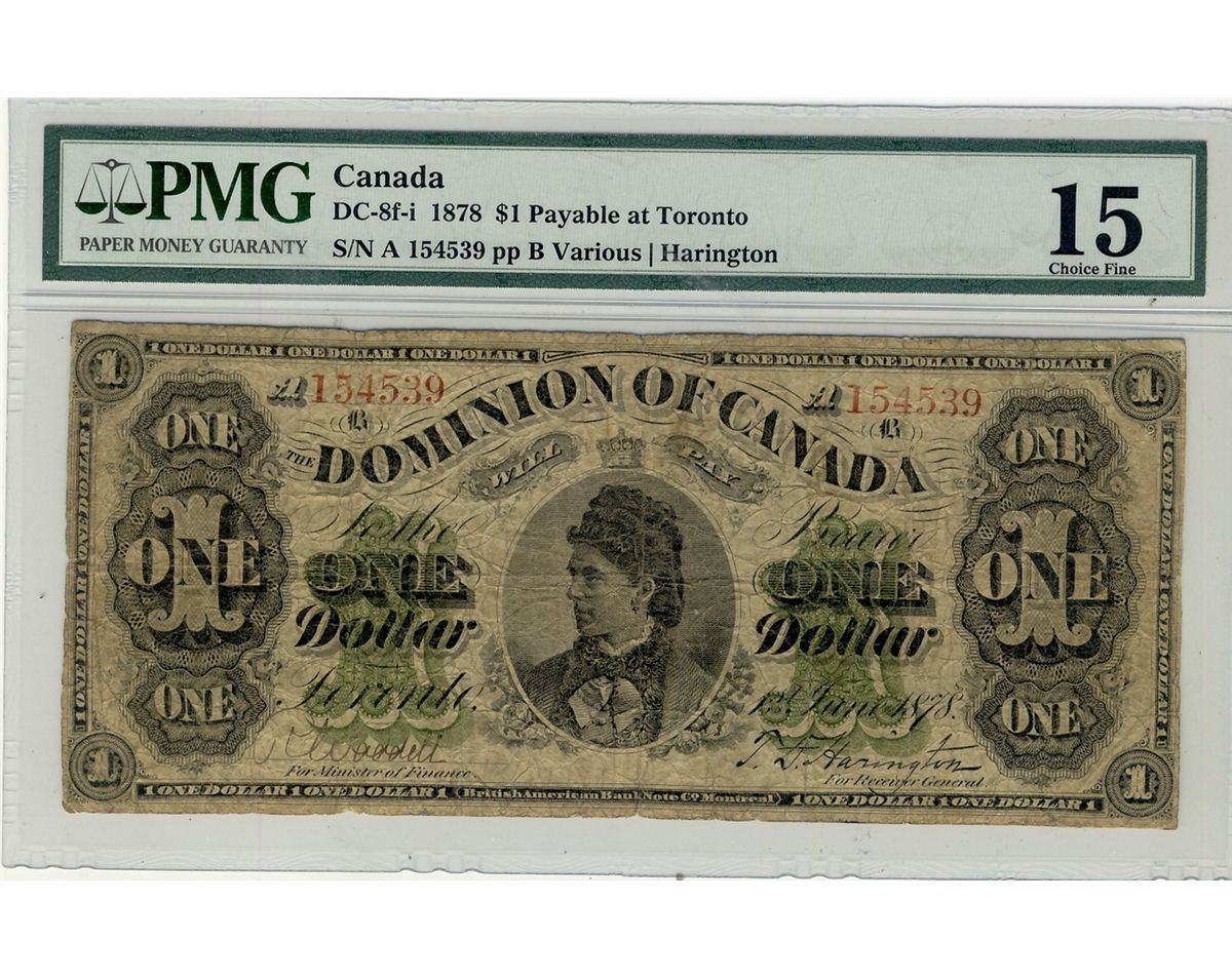 1878 $1 DC-8f-i #A154539 PMG F15.