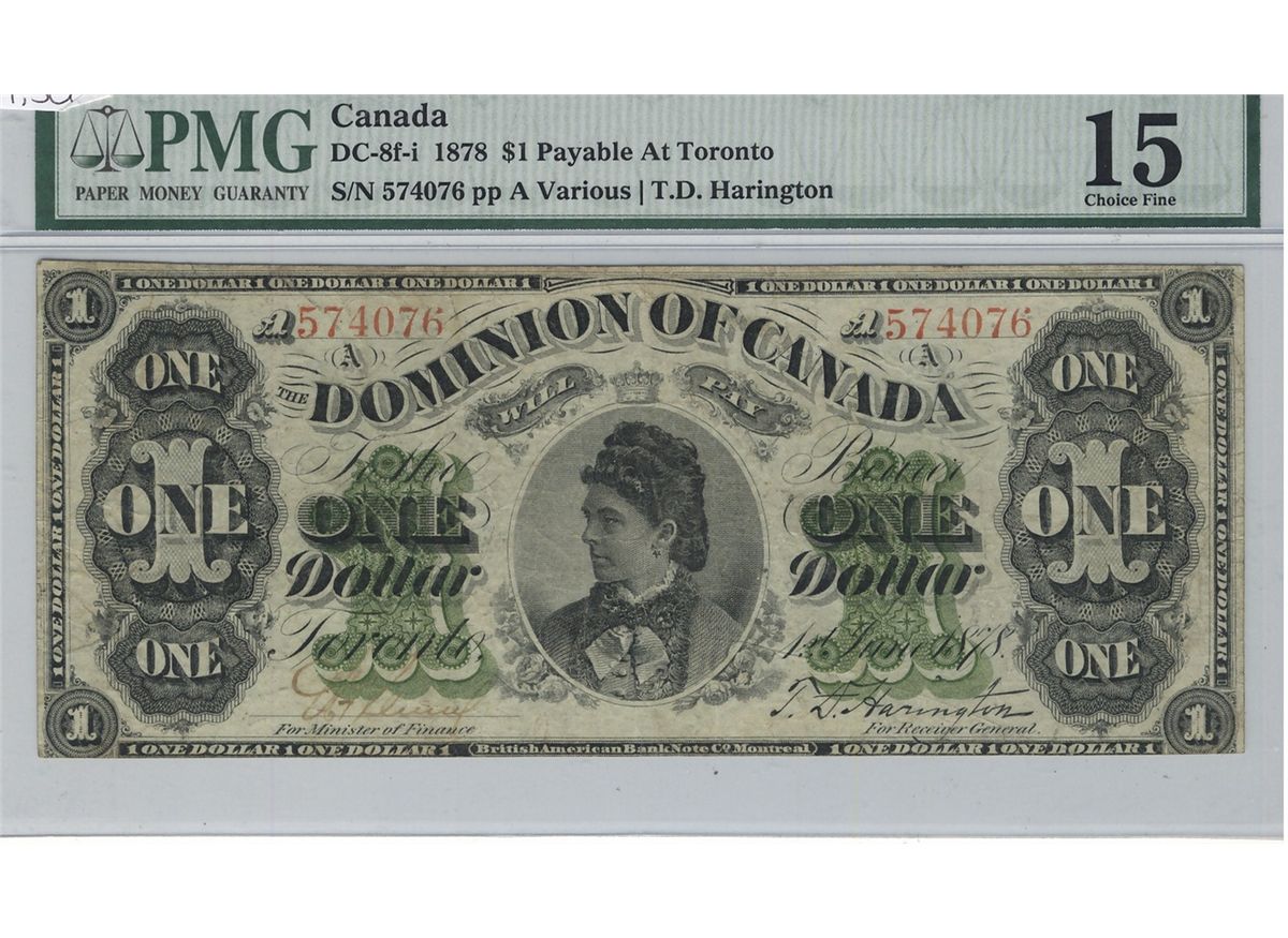 1878 $1 DC-8f-i Dominion of $1 Bank Note PMG F-15.
