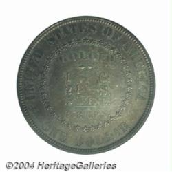 <table><tbody><tr><td><table> <TR><TD width="100%"><TABLE cellSpacing=1 cellPadding=3 width="100%" border=0><TBODY><TR><TD width="100%" bgColor=#79735c><FONT face=arial color=#ffffff size=3><B>Description</B> </FONT></TD></TR><TR><TD width="100%" bgColor=#ffffff><FONT face=arial size=2><B>1878 $1 Goloid Dollar, Judd-1557, Pollock-1749, R.6, PR65 PCGS.</B></I> Misattributed by PCGS as J-1560, but with the alternate reverse design and legends of J-1557. The head of Liberty faces left on the obverse, with E PLURIBUS UNUM above and the date below. She wears a cap inscribed LIBERTY in incuse letters. There are 13 stars at the border. On the reverse, the inscription GOLOID./1 -- G./24 -- S./.9 FINE./258 GRS. is within a circle of thirty-eight stars. The legend is at the border, the denomination, ONE DOLLAR is below. Struck in goloid alloy (3.6 percent gold, 86.4 percent silver, 10 percent copper) with a reeded edge. This elusive high grade specimen is beautifully accented in olive-gold and coppery-orange hues. </FONT></TD></TR></TBODY></TABLE></TD></TR></TBODY></TABLE><BR><A name=PricesRealized></A><TABLE cellSpacing=0 cellPadding=0 width="100%" bgColor=#000000 border=0><TBODY><TR><TD width="100%"><TABLE cellSpacing=1 cellPadding=3 width="100%" border=0><TBODY><TR><TD width="100%" bgColor=#79735c><A name=PR><FONT face=arial color=#ffffff size=3><B>Previous Prices from Heritage Auctions</B> </FONT></A></TD></TR><TR><TD bgColor=#f6f6ed>No Prior Data Recorded </TD></TR><TR><TD bgColor=#ffffff><FONT face=arial size=1 ?>PLEASE NOTE: All prices realized reflect the final hammer price PLUS the buyer's premium in auctions that charge a buyer's premium. Each item has a notation at the top of the listing indicating whether that lot included a buyer's premium. Example: A item that sells with a final hammer price of $100 and a 20% buyer's premium will display with a price realized of $120. All information listed is intended to be as accurate as possible, but errors are possible. Please use this guide carefully and inform us of any inaccuracies. </FONT></TD></TR></TBODY></TABLE></TD></TR></TBODY></TABLE><BR><TABLE cellSpacing=0 cellPadding=0 width="100%" bgColor=#000000 border=0><TBODY><TR><TD width="100%"><TABLE cellSpacing=1 cellPadding=3 width="100%" border=0><TBODY><TR><TD width="100%" bgColor=#79735c colSpan=6><FONT face=arial color=#ffffff size=3><B>Price Guide*</B> </FONT></TD></TR><TR bgColor=#f6f6ed><TD align=middle><B>Grade</B> </TD><TD align=middle><B>Coin World<BR>(Trends)</B> </TD><TD align=middle><B>Numismedia<BR>Retail</B> </TD><TD align=middle><B>Numismedia<BR>Wholesale</B> </TD><TD align=middle><B>Coin<BR>Universe</B> </TD><TD align=middle><B>Heritage<BR>Value Index</B> </TD></TR><TR bgColor=#ffffff><TD align=middle>64</TD><TD align=right>---</TD><TD align=right>---</TD><TD align=right>---</TD><TD align=right>---</TD><TD align=right>---</TD></TR><TR style="FONT-WEIGHT: bold" bgColor=#cccfdd><TD align=middle>65</TD><TD align=right>---</TD><TD align=right>---</TD><TD align=right>---</TD><TD align=right>---</TD><TD align=right>---</TD></TR><TR bgColor=#ffffff><TD align=middle>66</TD><TD align=right>---</TD><TD align=right>---</TD><TD align=right>---</TD><TD align=right>---</TD><TD align=right>---</TD></TR><TR bgColor=#ffffff><TD colSpan=6><FONT size=1>*All information listed is intended to be as accurate as possible, but errors are possible. No item may be returned or refused based on this information which is provided as a service to our customers. You should contact each pricing source directly to determine the accuracy of this information. </FONT></TD></TR></TBODY></TABLE></TD></TR></TBODY></TABLE><BR><TABLE cellSpacing=0 cellPadding=0 width="100%" bgColor=#000000 border=0><TBODY><TR><TD width="100%"><TABLE cellSpacing=1 cellPadding=3 width="100%" border=0><TBODY><TR><TD width="100%" bgColor=#79735c><FONT face=arial color=#ffffff size=3><B>Population Guide</B> </FONT></TD></TR><TR bgColor=#ffffff><TD align=middle><!-- Begin Output of Population Grid--><TABLE cellSpacing=0 cellPadding=0 width="100%" border=0><TBODY><TR><TD vAlign=center><TABLE cellSpacing=0 width="100%" border=1 cellsadding="3"><TBODY><TR><TD vAlign=center><TABLE cellSpacing=0 cellPadding=3 width="100%" border=1><TBODY><TR><TD vAlign=center align=middle bgColor=#f0f1e8 colSpan=2 <CENTER><FONT face=Arial size=2><B>PCGS Pop </B></FONT><CENTER></CENTER></TD><TD vAlign=center align=middle bgColor=#f0f1e8 colSpan=2><CENTER><FONT face=Arial size=2><B>NGC Pop</B></CENTER></FONT></TD></TR><TR><TD vAlign=center><FONT face=Arial size=2>(65)</FONT> </TD><TD vAlign=center align=right><FONT face=Arial size=2>1</FONT> </TD><TD vAlign=center><FONT face=Arial size=2>(65)</FONT> </TD><TD vAlign=center align=right><FONT face=Arial size=2>0</FONT> </TD></TR><TR><TD vAlign=center><FONT face=Arial size=2>(>65)</FONT> </TD><TD vAlign=center align=right><FONT face=Arial size=2>0</FONT> </TD><TD vAlign=center><FONT face=Arial size=2>(>65)</FONT> </TD><TD vAlign=center align=right><FONT face=Arial size=2>0</FONT> </TD></TR></TBODY></TABLE></TD></TR></TBODY></TABLE></TD></TR></TBODY></TABLE><!-- End Output of Population Grid--></TD></TR></TBODY></TABLE></TD></TR></TBODY></TABLE><BR><TABLE cellSpacing=0 cellPadding=0 width="100%" bgColor=#000000 border=0><TBODY><TR> <font color='#000000'><span style='background-color: #FFFFFF'><td bgcolor='#FFFFFE'> Important notice: Heritage usually auctions material at the rate of 200-250 lots per hour. On some occasions eBay Live bid software or the Internet may not be able to keep up with the pace of the auction. We recommend placing a realistic absentee bid now as insurance to avoid disappointment. Occasionally the auctioneer may eliminate or reject an eBay Live bid, and the auctioneer may also reopen a lot after the close of the eBay live bidding (usually because we missed an audience bid), and may reject your bid even if it shows you as the winning bidder. By bidding via eBay Live, you agree that Heritage may 