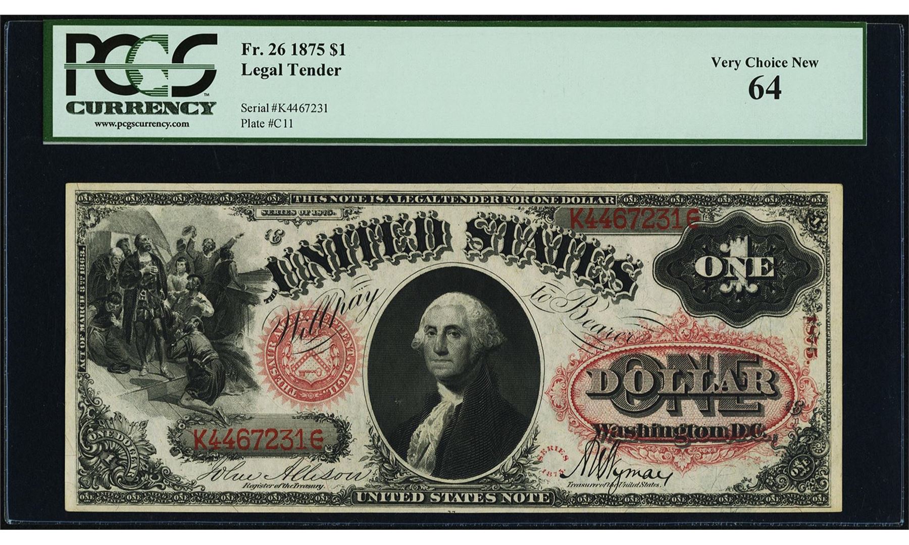 One 1878 $1 Legal Tender Note Fr.26 PCGS Very Choice New 64. PCGS Graded.