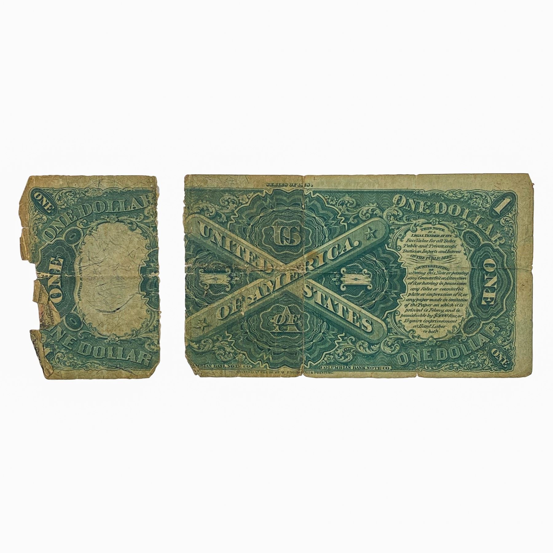 1878 $1 Legal Tender Note Torn