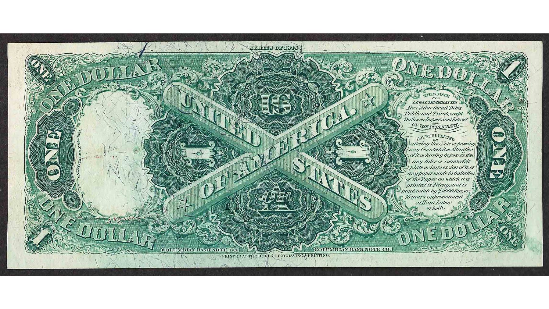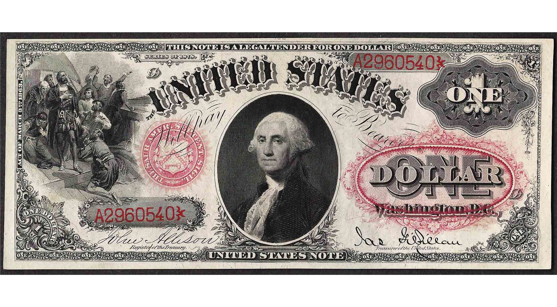 One 1878 $1 Legal Tender Note.