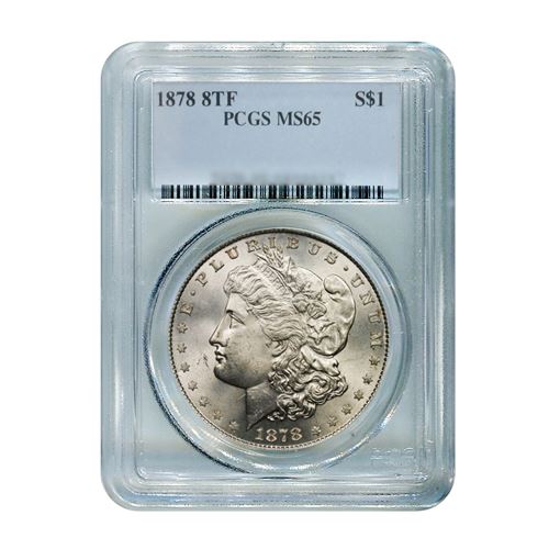 1878 $1 Morgan Silver Dollar 8 Tail Feather PCGS MS65