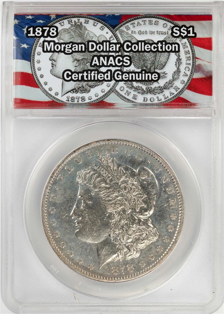 One 1878 $1 Morgan Silver Dollar Coin ANACS Certified Genuine. ANACS Certified.