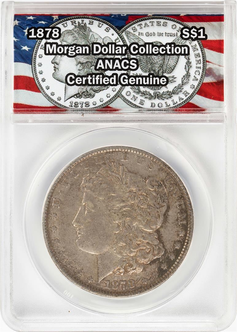One 1878 $1 Morgan Silver Dollar Coin ANACS Genuine. ANACS Certified.