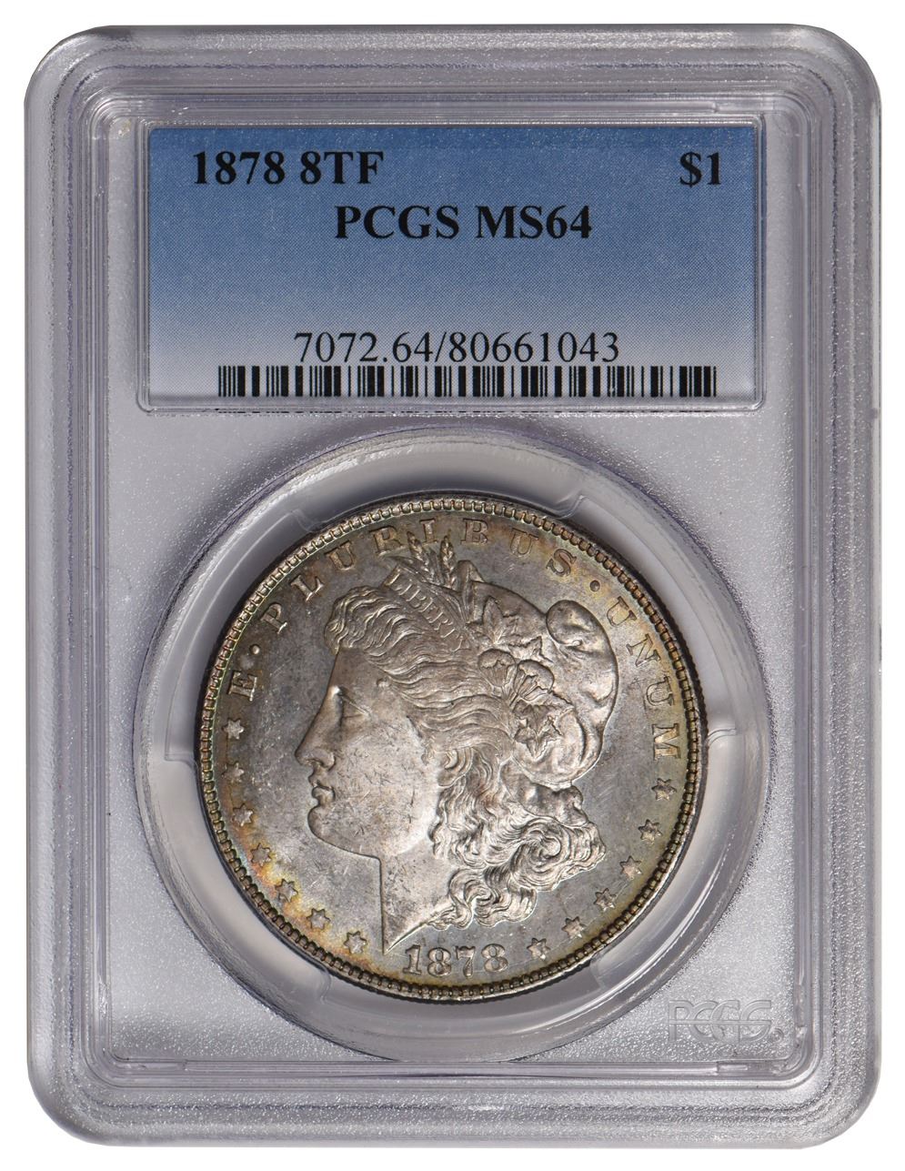 One 1878 $1 Morgan Silver Dollar PCGS MS64.