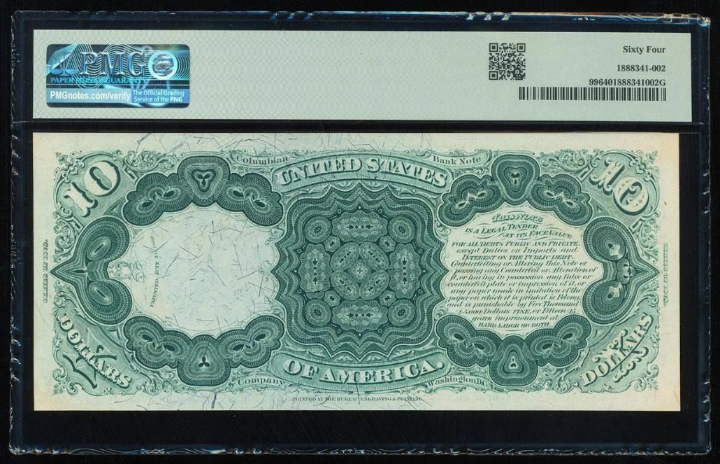 One 1878 $10 Jackass Legal Tender Note PMG 64.