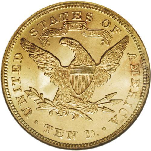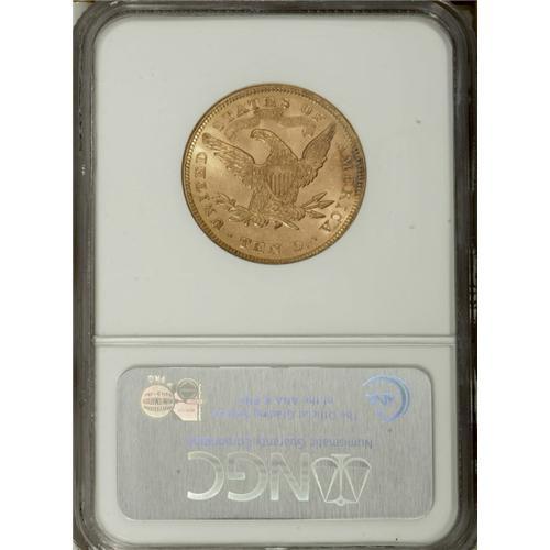 <B>1878 $10 MS64 NGC.</B></I> After the rarities of the 1860s and mid-1870s, mintages of Liberty Head eagles jumped exponentially in the years through 1882. While the 1878 mintage was a modest 73,780 coins--highest since 1861--by 1881 the production total jumped to more than 3.8 million pieces. The 1878 is nonetheless somewhat scarce, although Mint State examples can be located with patience. This is a beautiful near-Gem piece with deep orange-gold surfaces, exuberant luster, and considerable prooflikeness on the reverse. The bold strike completes the attractive package. NGC has certified 17 pieces in MS64 with none finer, while PCGS has graded 12 such coins, with a single piece finer (4/07).<BR><BR><b>Shipping:</b> Coins & Currency (<a target="_blank" href="http://www.heritageauctions.com/common/shipping.php">view shipping information</a>)