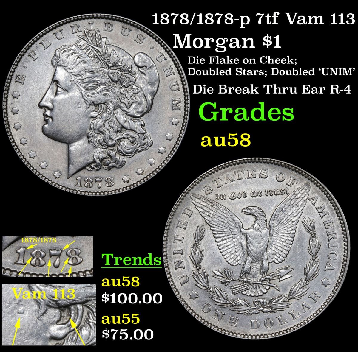 1878/1878-p 7tf Vam 113 Morgan Dollar $1 Grades Choice AU/BU Slider.