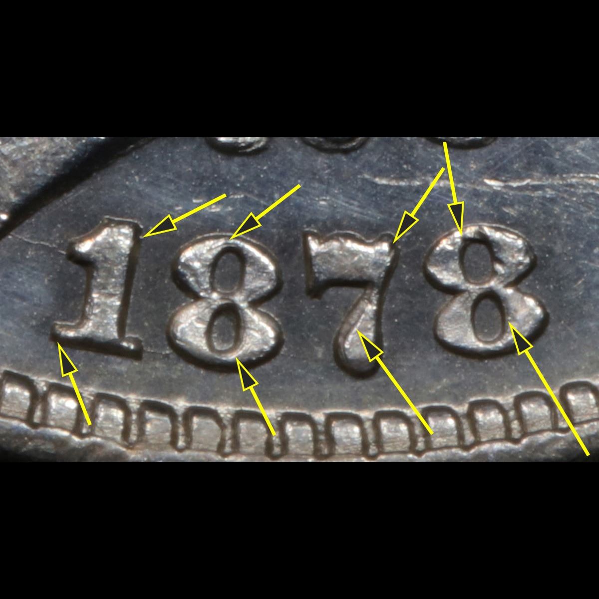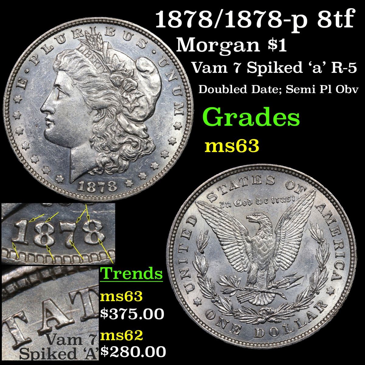 1878/1878-p 8tf Vam 7 Spiked 'a' R-5 Doubled Date; Semi Pl Obv Morgan Dollar $1 Grades Select Unc.