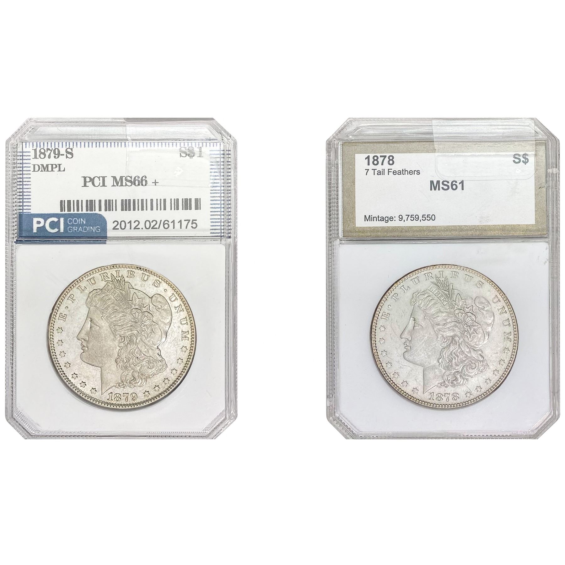 1878-1879 [2] Morgan Silver Dollar PCI MS61-66 DMPL