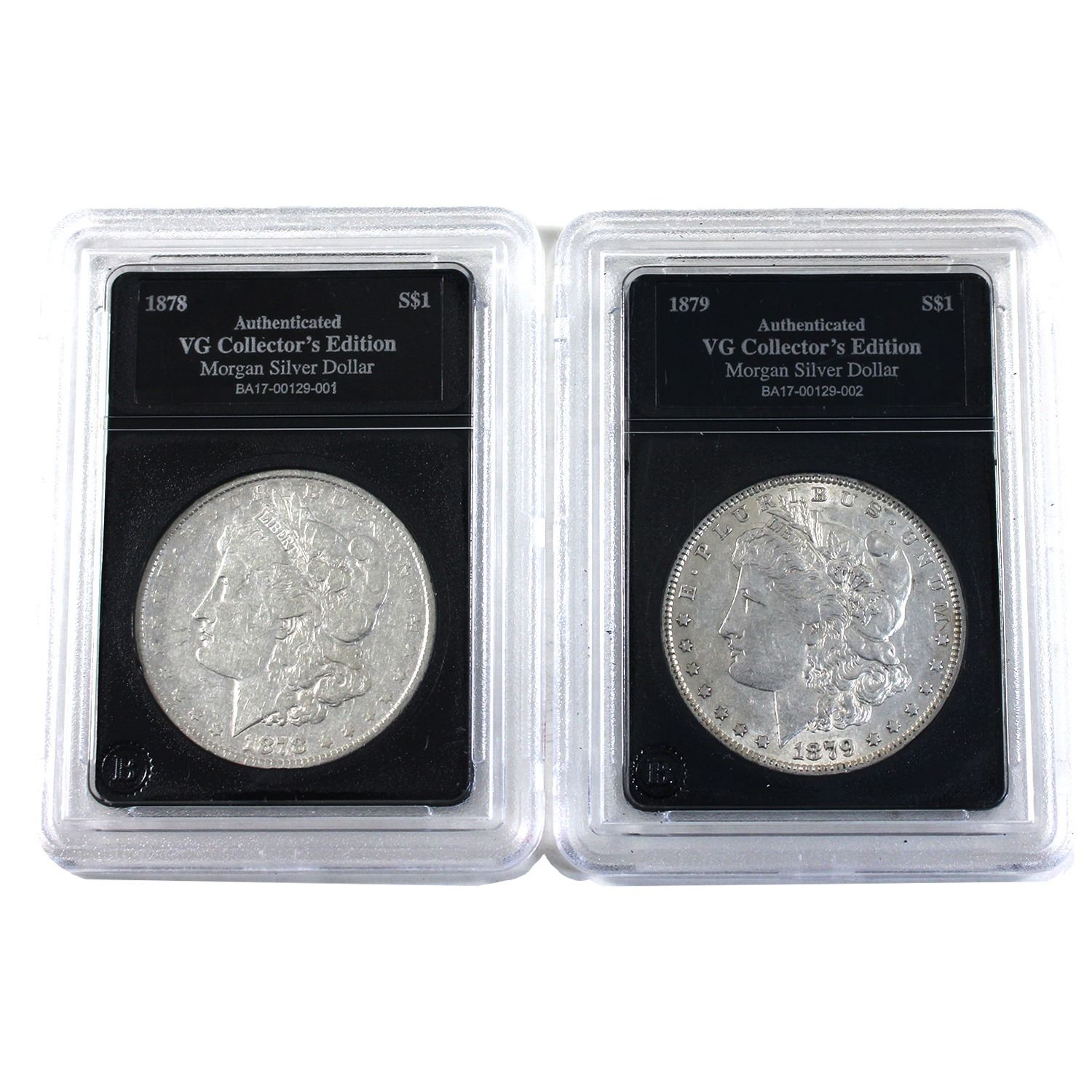 1878 & 1879 USA Morgan Silver Dollars in Bradford Exchange Holders. 2pcs