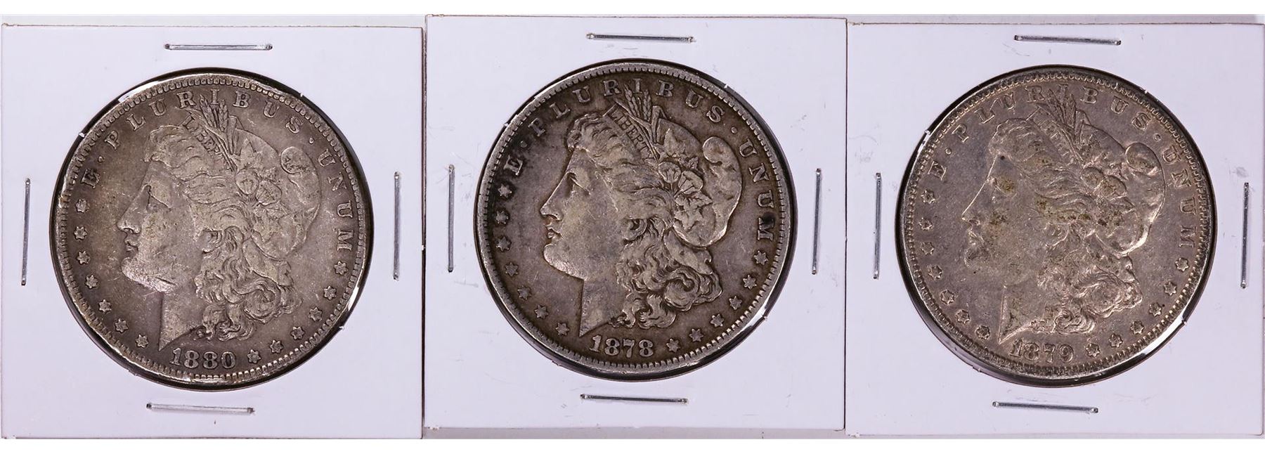 One 1878-1880 Morgan Silver Dollar Coin Collector's Set. Great for any collection!