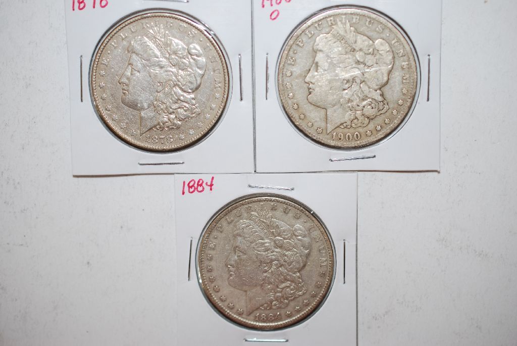 1878, 1884 & 1900-O Silver Morgan $1; Lot of 3; EST. $100-125