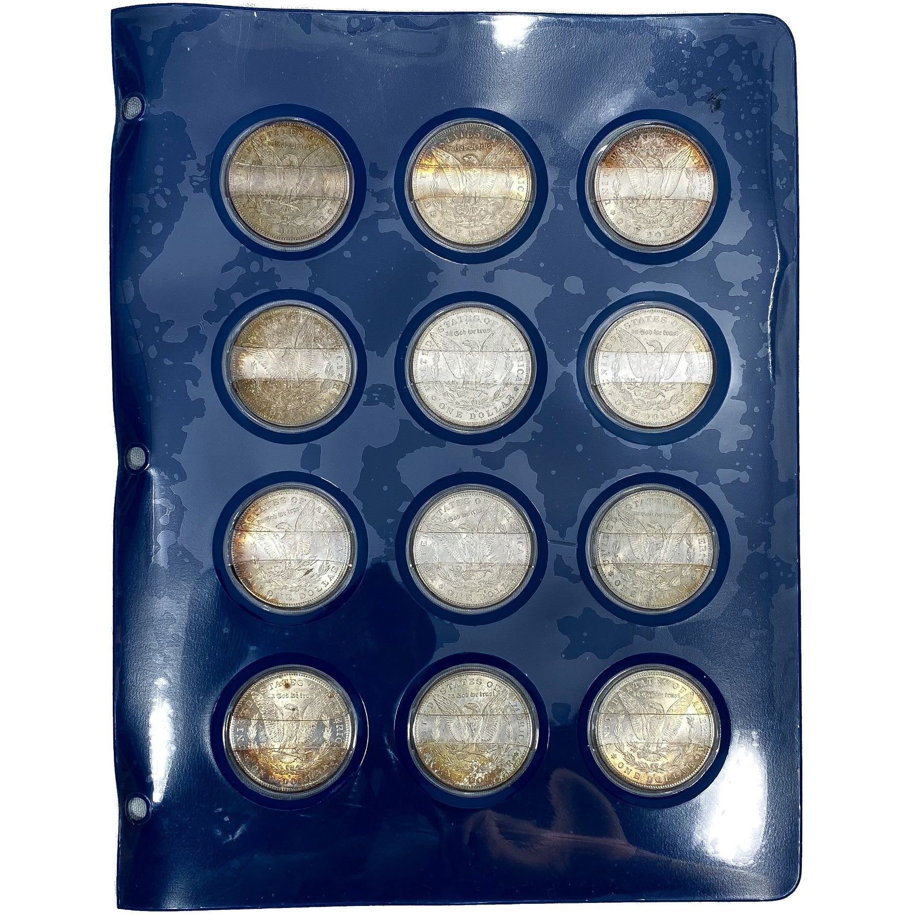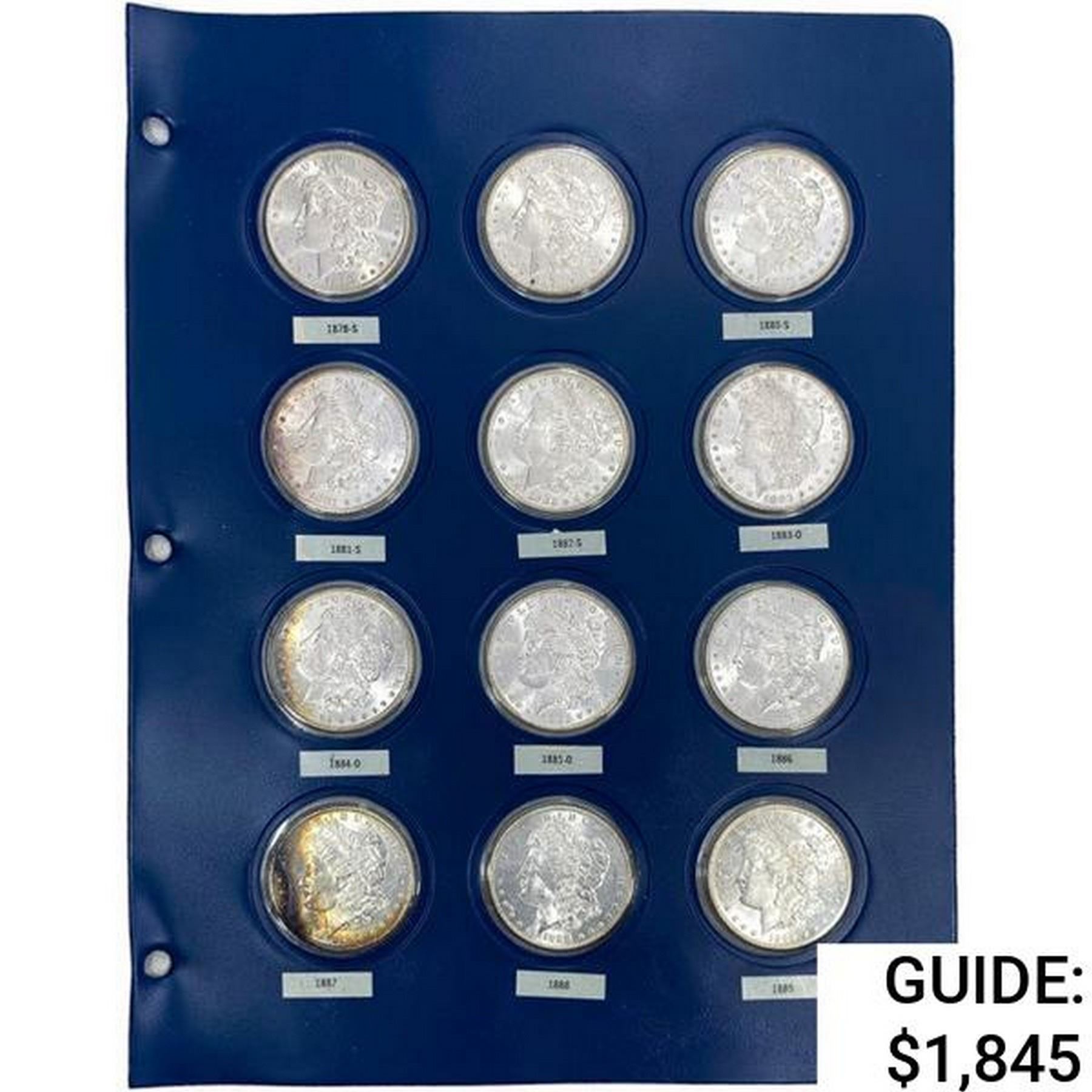 1878-1889 Unc. Morgan Dollars; w/binder [12 Coins]