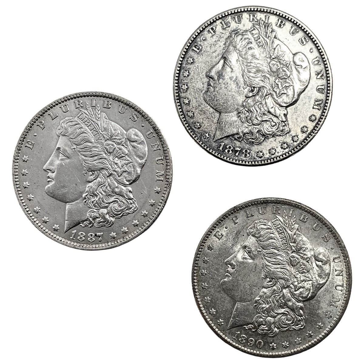 1878-1890 UNC Morgan Silver Dollar [3 Coins]