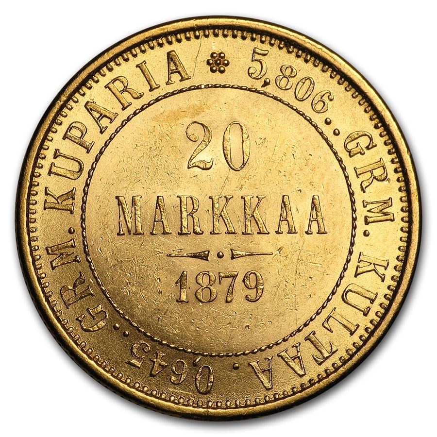 1878-1891 Finland Gold 20 Markkaa AU/BU (Random Dates)