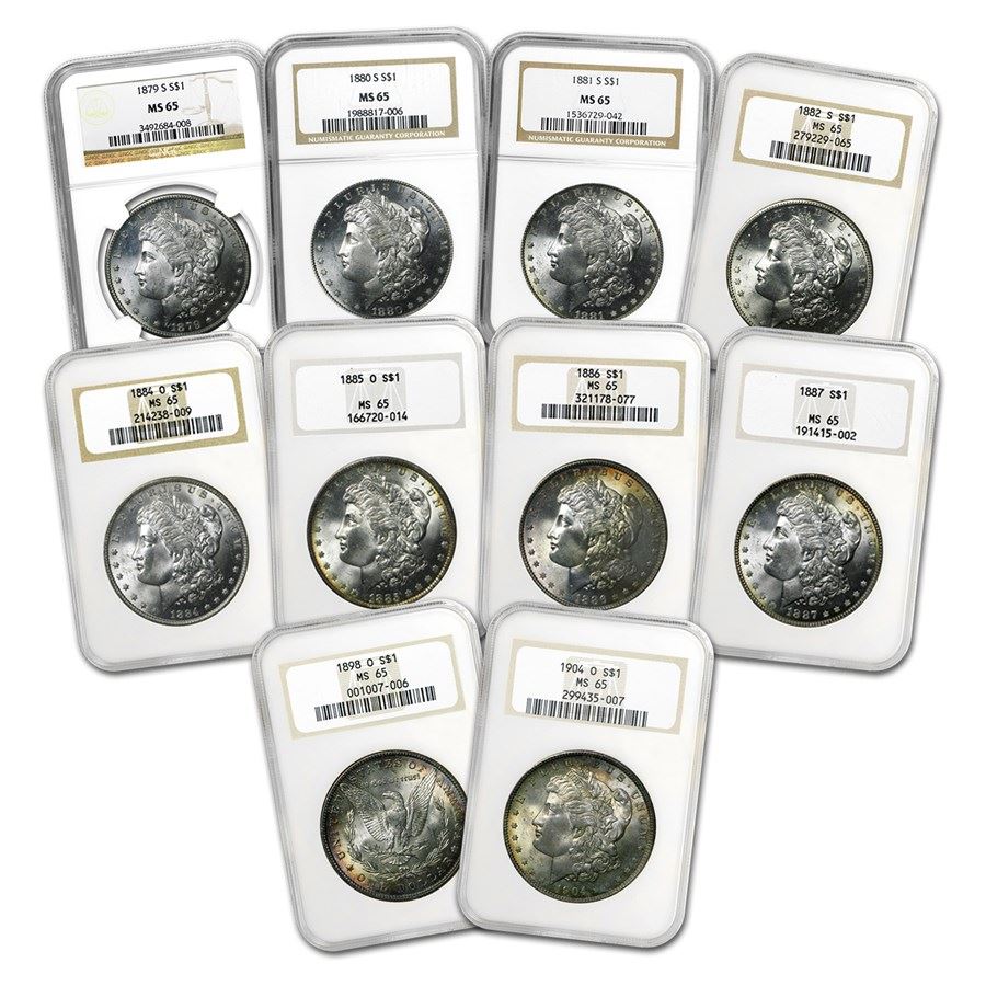 1878-1904 Morgan Dollars MS-65 NGC (10 Different Dates/Mints)