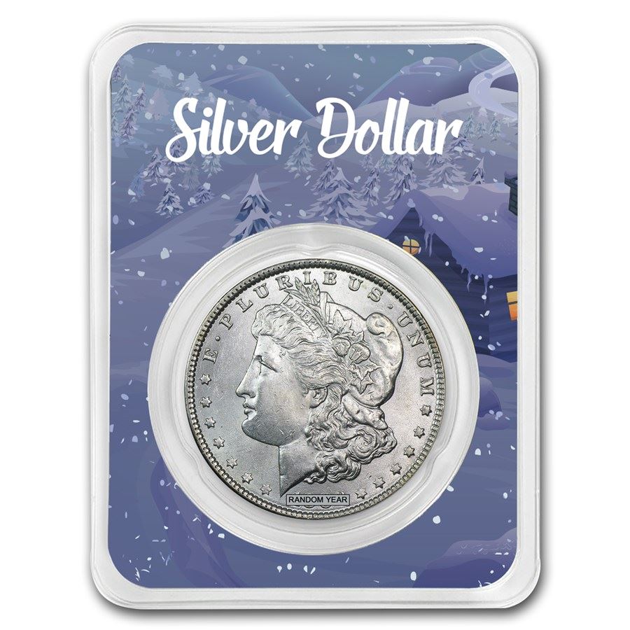 1878-1904 Morgan Silver Dollar Winter Scene Card BU (Random Year)