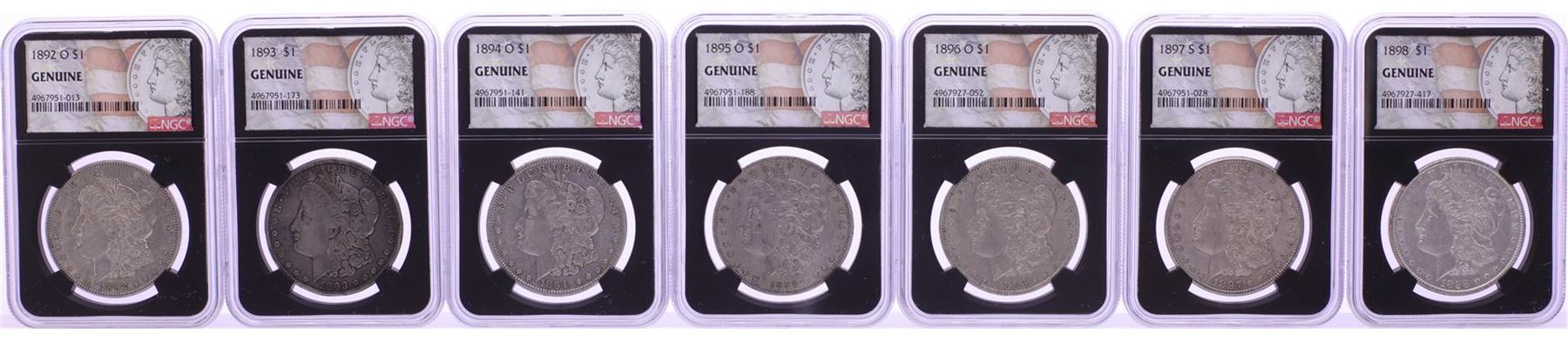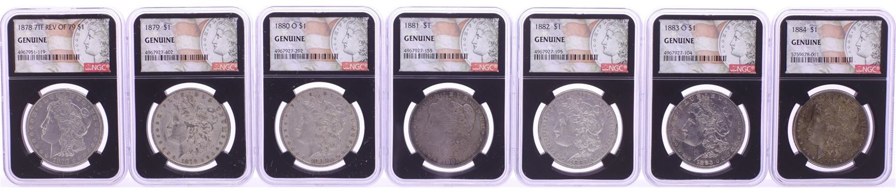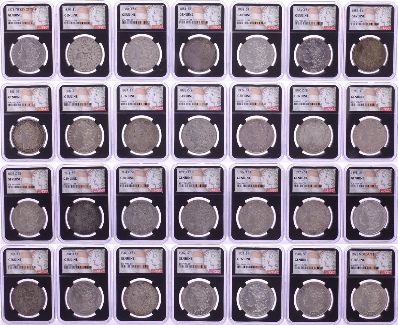 One 1878-1921 $1 Morgan Silver Dollar (28) Coin Date Set NGC Genuine. NGC Certified.