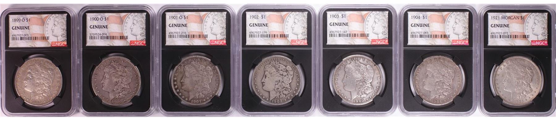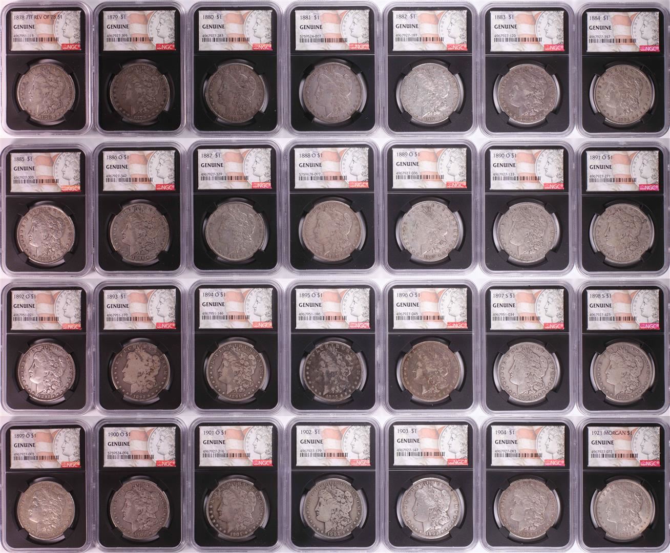 One 1878-1921 $1 Morgan Silver Dollar (28) Coin Date Set NGC Genuine. NGC Certified.