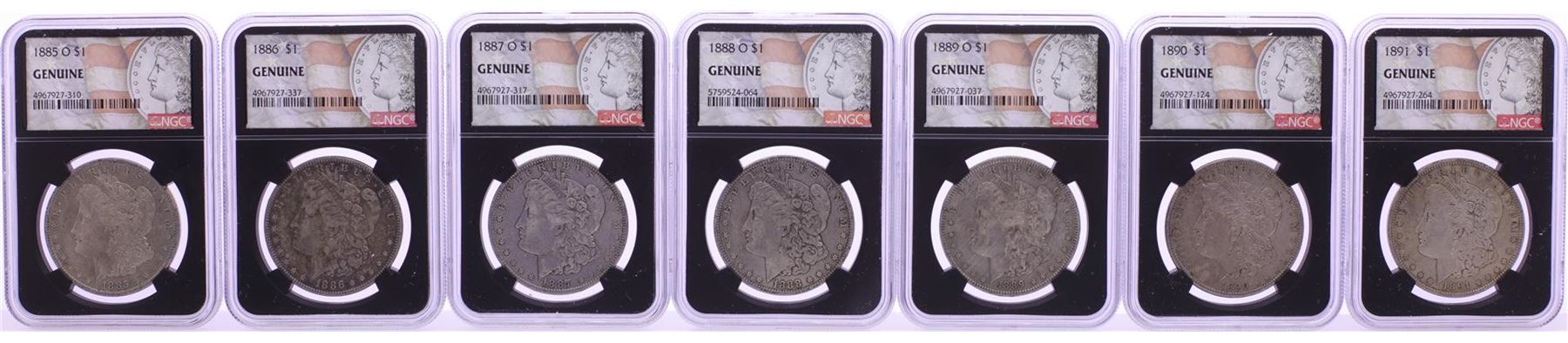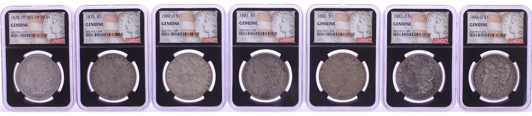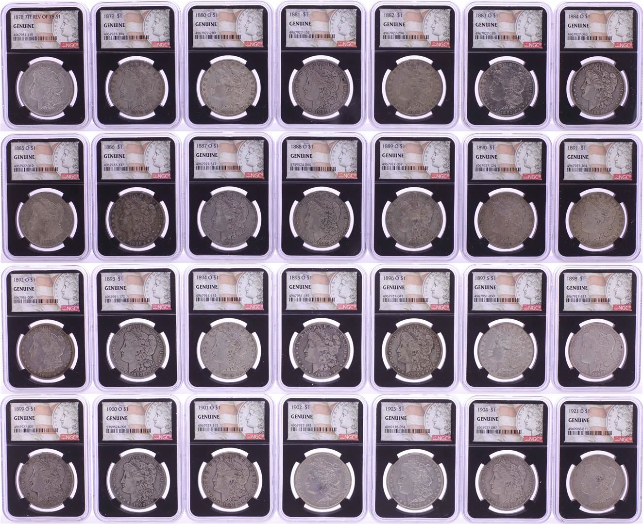 One 1878-1921 $1 Morgan Silver Dollar (28) Coin Date Set NGC Genuine. NGC Certified.