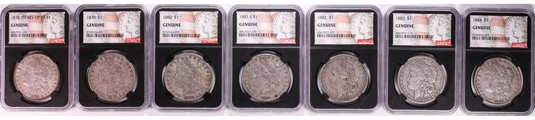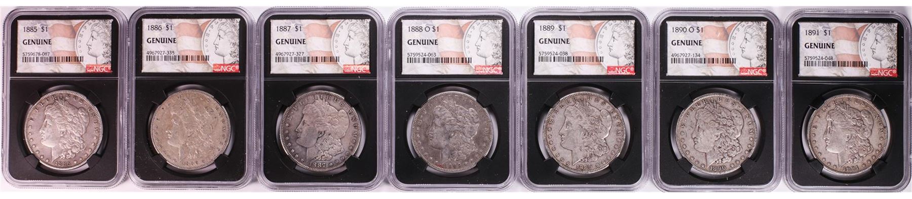 One 1878-1921 $1 Morgan Silver Dollar (28) Coin Date Set NGC Genuine. NGC Certified.