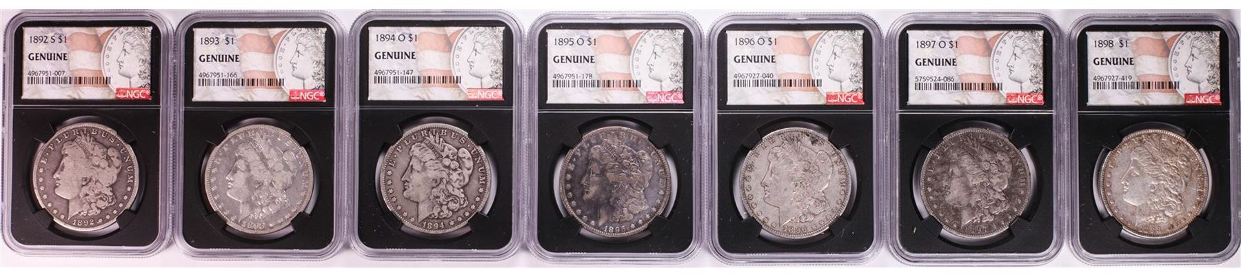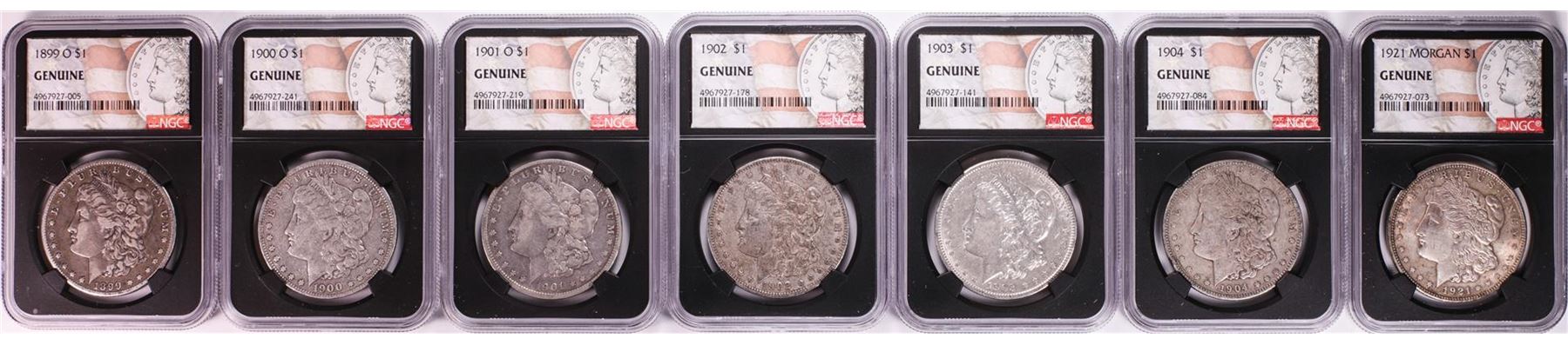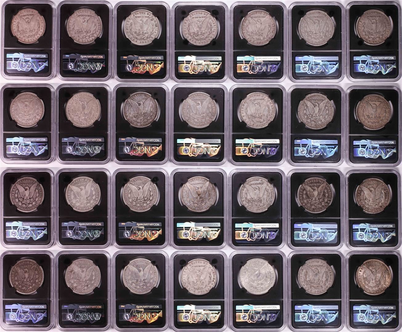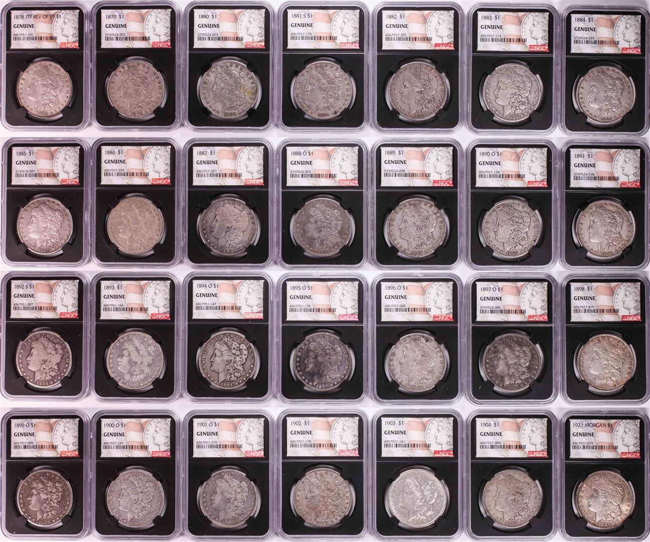 One 1878-1921 $1 Morgan Silver Dollar (28) Coin Date Set NGC Genuine. NGC Certified.