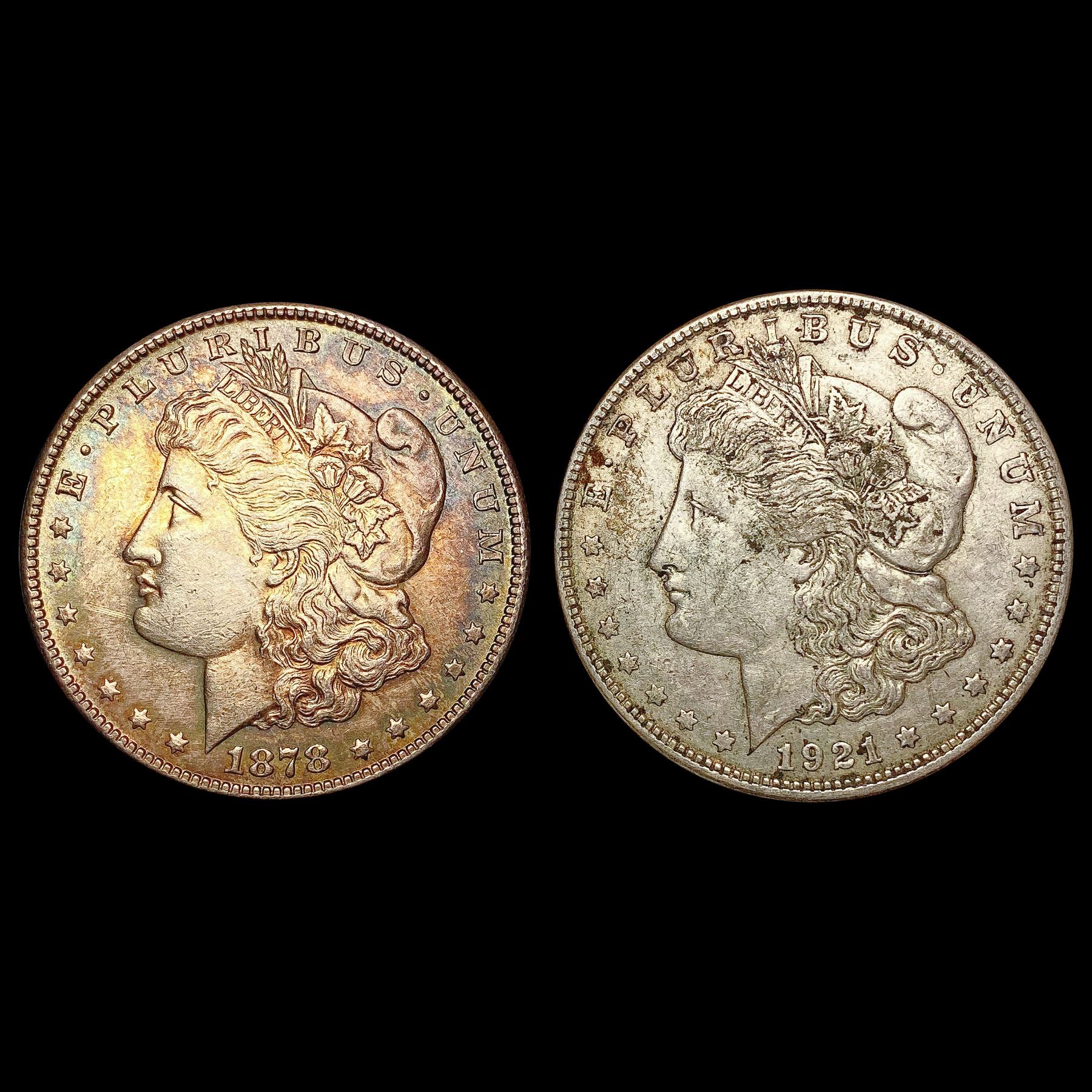 1878 & 1921 First and Last Issue Morgan Dollars HIGH GRADE