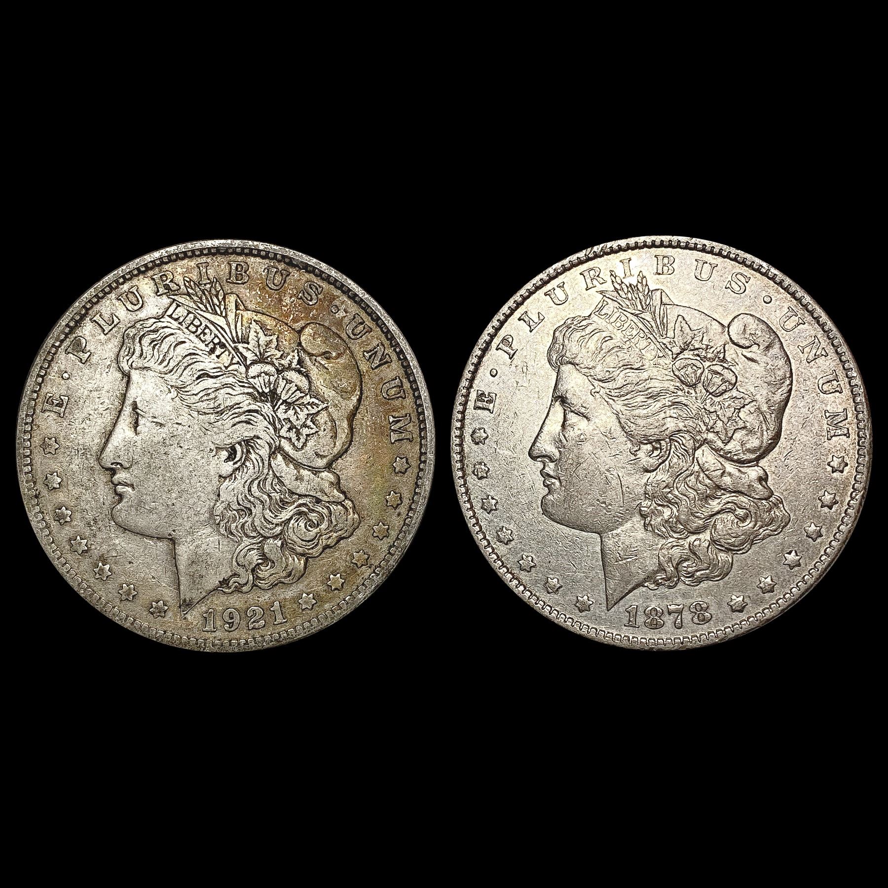 1878 & 1921 First and Last Issue Morgan Dollars HIGH GRADE