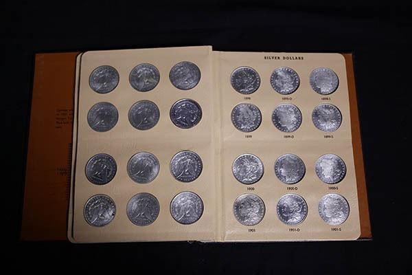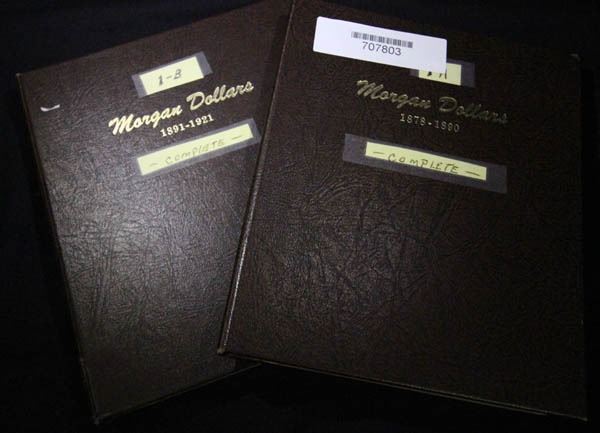1878-1921 Morgan Dollar Type Set, no 1895. Very Good to Very Nice. Housed in the Brown Dansco folder as formed by an old time collector/hoarder in variable to decent quality, painstakingly assembled over many decades, inspection invited. A few with faults as one may expect.