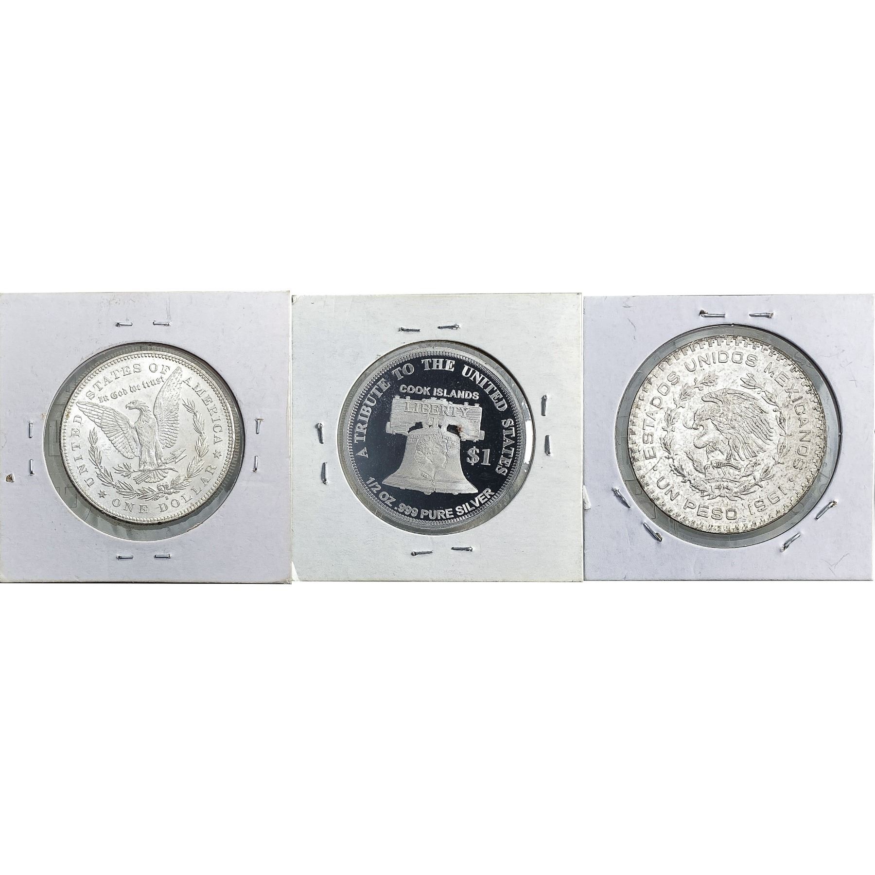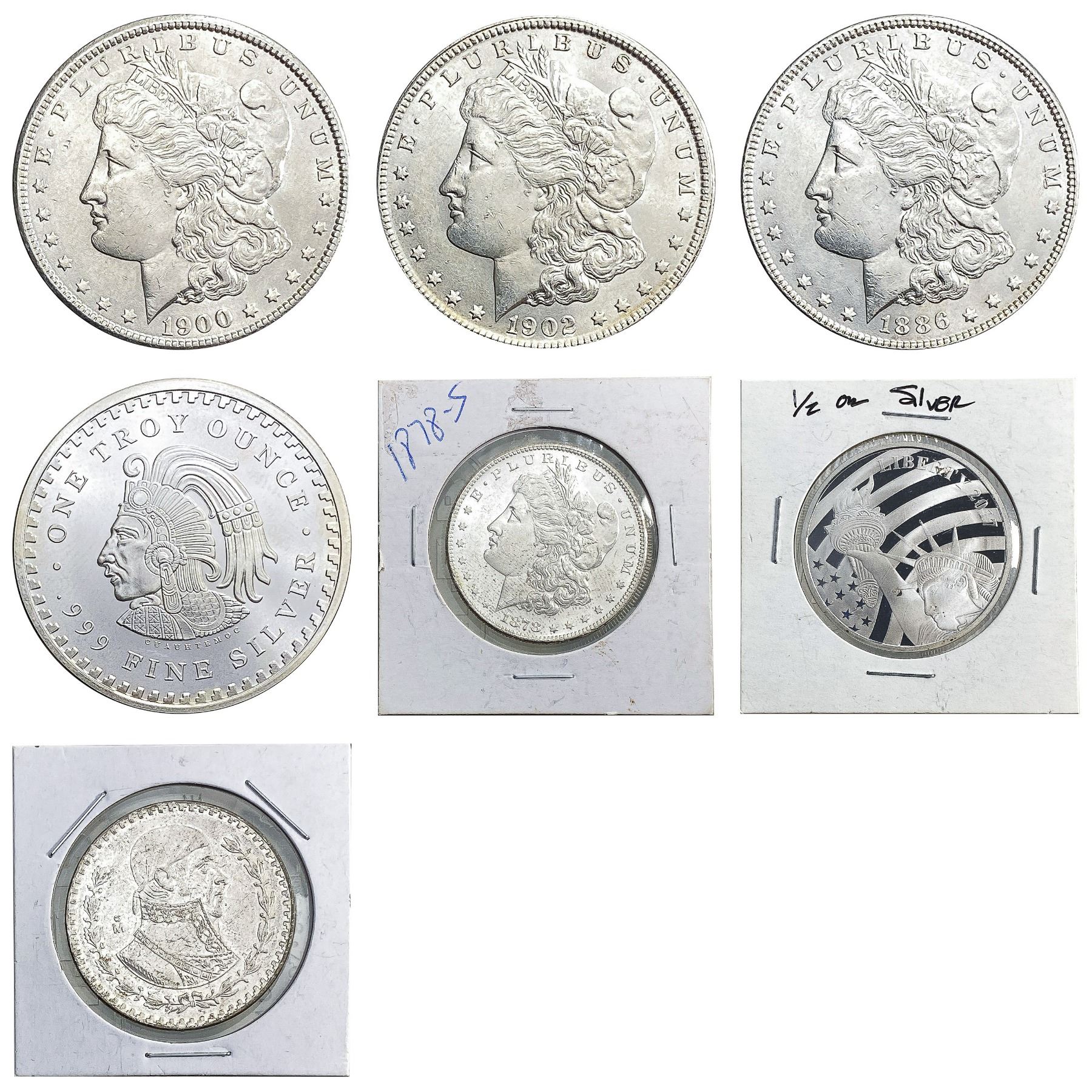 1878-1961 GEM BU US and Foreign Silver Dollar Lot [7 Coins]