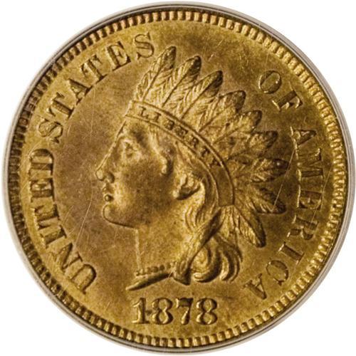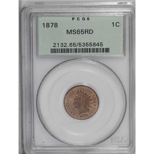 <B>1878<1C> MS65 Red PCGS.</B></I> This lustrous Gem is sharply impressed, with good definition on the feather tips and clarity on all four diamonds. The surfaces are well preserved and display lovely copper-gold surfaces. A few light toning spots are scattered about. A couple of small marks in the upper obverse field do not distract. Population: 45 in 65, 13 finer (8/06).