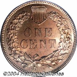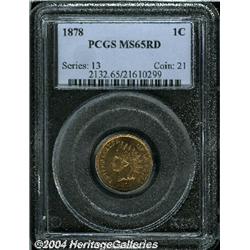 <B>1878<1C> MS65 Red PCGS.</B></I> Fully struck and virtually mark-free, with frosty, radiantly lustrous surfaces that display lovely red-gold, orange-red, and mint-green coloration. There are a few flyspecks on each side, but they do little to detract from the overall quality and beauty of this splendid Gem. Population: 44 in 65, 10 finer (9/04). <BR><BR><B>Important notice:</B> Heritage usually auctions material at the rate of 200-250 lots per hour. On some occasions eBay Live bid software or the Internet may not be able to keep up with the pace of the auction. We recommend placing a realistic absentee bid now as insurance to avoid disappointment. Occasionally the auctioneer may eliminate or reject an eBay Live bid, and the auctioneer may also reopen a lot after the close of the eBay live bidding (usually because we missed an audience bid), and may reject your bid even if it shows you as the winning bidder. By bidding via eBay Live, you agree that Heritage may award the lot to another bidder at its sole discretion under the circumstances described above or any other reasonable circumstances. Since eBay bids are not shown to us until we open the lot on the floor, we treat those bids just like floor bids. In most cases the floor responds before the eBay bid is presented to us, due to Internet lag time, so for consistency we have made it a policy that floor bids are always considered first over tie eBay live bids. Also please note that all Heritage lots purchased through eBay Live carry a 20% Buyer's Premium. Please make sure you read the Terms and Conditions before you bid.