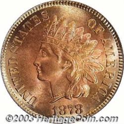 1878 1C MS66 Red PCGS. Production of Indian Cents in 1878 was sizeable compared to that in 1877. On the other hand, the delivery of the 1878 (5.7 million pieces) is limited relative to most of the following dates in this series. Perhaps not surprisingly, therefore, the 1878 is a conditionally challenging issue that is downright rare as a fully lustrous Gem. This otherwise cherry-red representative reveals some lighter pink color around the obverse periphery with orange-gold hues in the corresponding area on the reverse. Swirling cartwheel visual effects grace both sides and accent the crisply detailed features. There is not a single blemish of note on either side of this accurately graded survivor. Population: 8 in 66 Red, only 1 finer (1/03).From the Colburn Collection. Important notice: We expect to be auctioning lots at the rate of 200-250 per hour. On occasion eBay live bid software cannot keep up with the pace of the auctions where 4-5 lots per minute can hammer down, so we recommend that you place a realistic absentee bid now as insurance to avoid disappointment. Also please note that all Heritage/CAA lots purchased through eBay Live carry a 20% Buyer's Premium. Please make sure you read the Terms and Conditions.