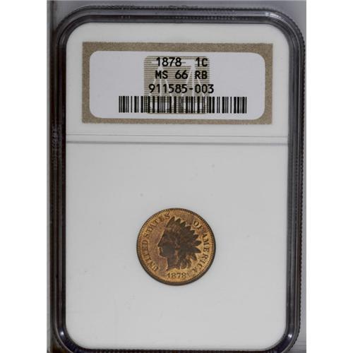 <B>1878<1C> MS66 Red and Brown NGC.</B></I> Nicely struck with mottled golden-orange and chestnut on its well-preserved surfaces. Some tiny carbon flecks appear on the reverse. Census: 13 in 66 Red and Brown, 0 finer (7/06).<BR><I>From The Tigard Oregon Small Cent Collection.</B></I>