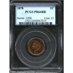 1878 1C PR64 Red and Brown PCGS. An almost fully red specimen that would easily merit a Gem rating s