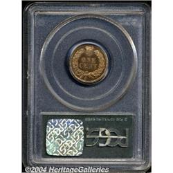 <B>1878<1C> PR65 Red PCGS.</B></I> An intricately detailed specimen with subtle frosting over the central devices and lovely pinkish-golden coloration. Just a few microscopic carbon flecks separate this splendid 1878 proof from an even higher rating. Population: 37 in 65, 11 finer (3/04). <BR><BR><B>Important notice:</B> Heritage usually auctions material at the rate of 200-250 lots per hour. On some occasions eBay Live bid software or the Internet may not be able to keep up with the pace of the auction. We recommend placing a realistic absentee bid now as insurance to avoid disappointment. Occasionally the auctioneer may eliminate or reject an eBay Live bid, and the auctioneer may also reopen a lot after the close of the eBay live bidding (usually because we missed an audience bid), and may reject your bid even if it shows you as the winning bidder. By bidding via eBay Live, you agree that Heritage may award the lot to another bidder at its sole discretion under the circumstances described above or any other reasonable circumstances. Since eBay bids are not shown to us until we open the lot on the floor, we treat those bids just like floor bids. In most cases the floor responds before the eBay bid is presented to us, due to Internet lag time, so for consistency we have made it a policy that floor bids are always considered first over tie eBay live bids. Also please note that all Heritage lots purchased through eBay Live carry a 20% Buyer's Premium. Please make sure you read the Terms and Conditions before you bid.