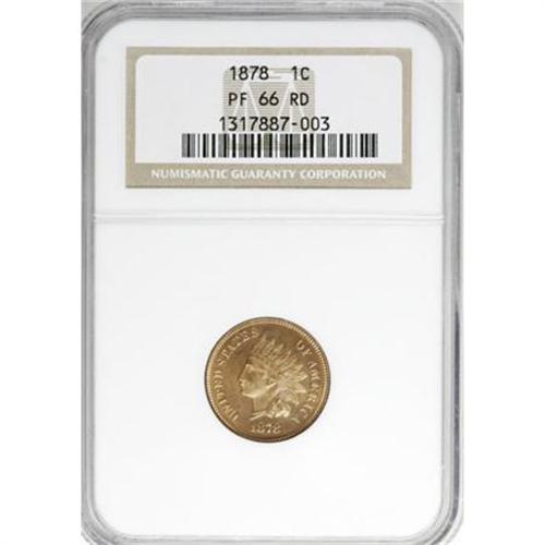 <B>1878 1C PR66 Red NGC.</B></I> Fully brilliant orange is subtly subdued on each side of this Premium Gem. It is sharply defined and highly attractive. Census: 6 in 66 Red, 1 finer (1/08).<BR><BR><B>Coin Engraver:</B> James B. Longacre<BR><BR><b>Shipping:</b> Coins & Currency (<a target="_blank" href="http://www.heritageauctions.com/common/shipping.php">view shipping information</a>)