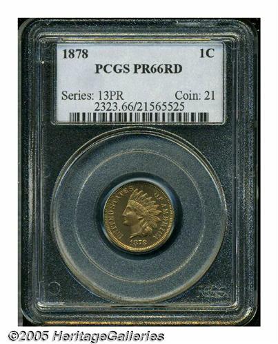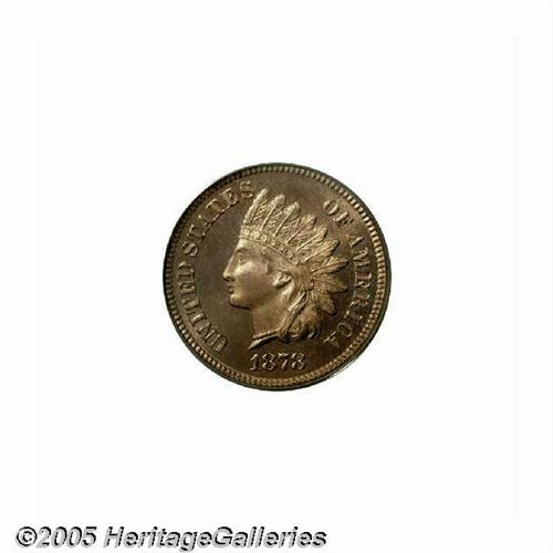 <B>1878<1C> PR66 Red PCGS.</B></I> A gorgeous honey-gold premium Gem. Only the very tips of the upper headdress feathers are not fully struck, and the fields are pristine except for a few miniscule carbon flecks. A better date, the mintage of 5.8 million pieces is less than any subsequent Philadelphia Mint issue. Population: 8 in 66, 1 finer (5/05).