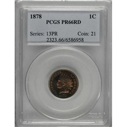 <B>1878 1C PR66 Red PCGS.</B></I> A glittering Gem example with unfathomably deep mirrors and a fully original, coppery-red color. A virtually carbon-free specimen, however, a couple of microscopic nicks on the obverse can be seen under magnification. Population: 8 in 66 Red, 1 finer (7/07). <BR><BR><B>Coin Engraver:</B> James B. Longacre<BR><BR><b>Shipping:</b> Coins & Currency (<a target="_blank" href="http://www.heritageauctions.com/common/shipping.php">view shipping information</a>)
