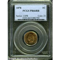 <B>1878 1C PR66 Red and Brown PCGS.</B></I> An attractive golden-brown patina graces both obverse and reverse. No unsightly spots or flecks are apparent on this nicely struck Premium Gem. Population: 2 in 66, 0 finer (1/05).