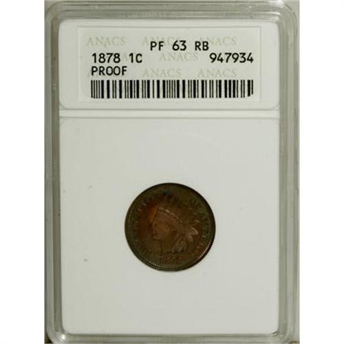 <B>1878 1C PR63 Red and Brown ANACS.</B></I> NGC Census: (20/138). PCGS Population (58/181). Mintage: 2,350. Numismedia Wsl. Price for NGC/PCGS coin in PR63: $242. (#2322)<BR><BR><B>Coin Engraver:</B> James B. Longacre<BR><BR><b>Shipping:</b> Coins & Currency (<a target="_blank" href="http://www.heritageauctions.com/common/shipping.php">view shipping information</a>)