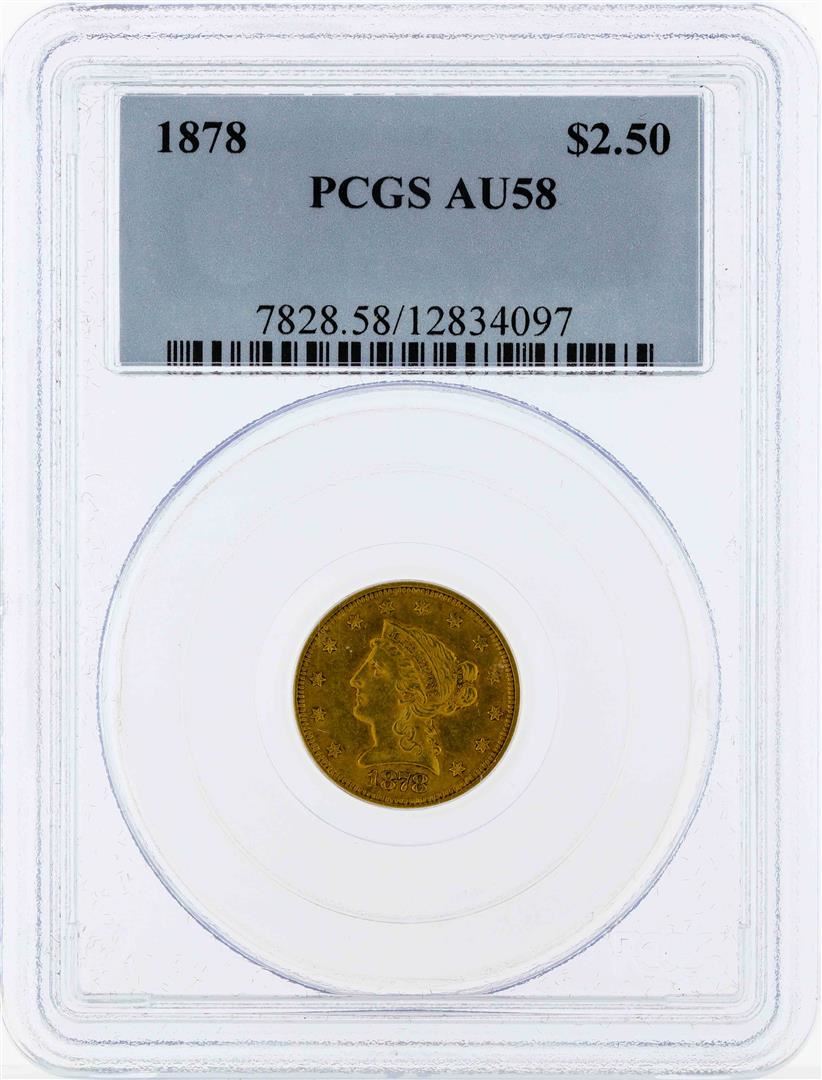 One 1878 $2 1/2 Liberty Head Quarter Eagle Gold Coin PCGS AU58. PCGS Graded.