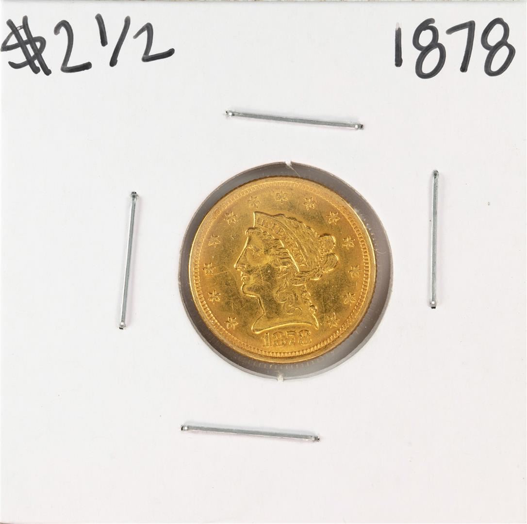 One 1878 $2 1/2 Liberty Head Quarter Eagle Gold Coin.