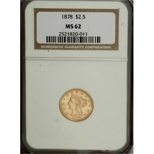 <B>1878 $2 1/2 MS62 NGC.</B></I> NGC Census: (436/377). PCGS Population (294/374). Mintage: 286,260. Numismedia Wsl. Price for NGC/PCGS coin in MS62: $525. (#7828)<BR><BR><B>Coin Engraver:</B> Christian Gobrecht<BR><BR><b>Shipping:</b> Coins & Currency (<a target="_blank" href="http://www.heritageauctions.com/common/shipping.php">view shipping information</a>)